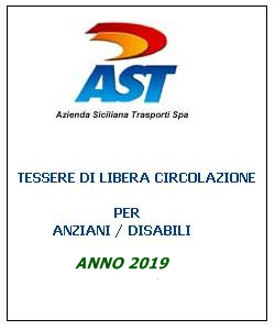 COLORO CHE NE HANNO FATTO RICHIESTA, POTRANNO RITIRARE LE NUOVE TESSERE DI LIBERA CIRCOLAZIONE PER VIAGGIARE CON LE VETTURE DELL´AZIENDA SICILIANA TRASPORTI. GIÀ CONSEGNATE LE TESSERE RISERVATE AGLI ANZIANI